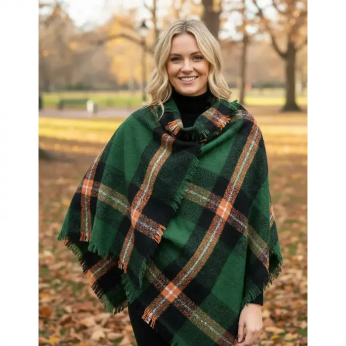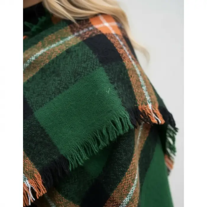 Esta manta es el accesorio perfecto para mantenerse abrigado con estilo durante los días fríos. Su diseño versátil permite utilizarla como bufandón, manta sobre los hombros o poncho, añadiendo un toque de elegancia y color a cualquier atuendo.